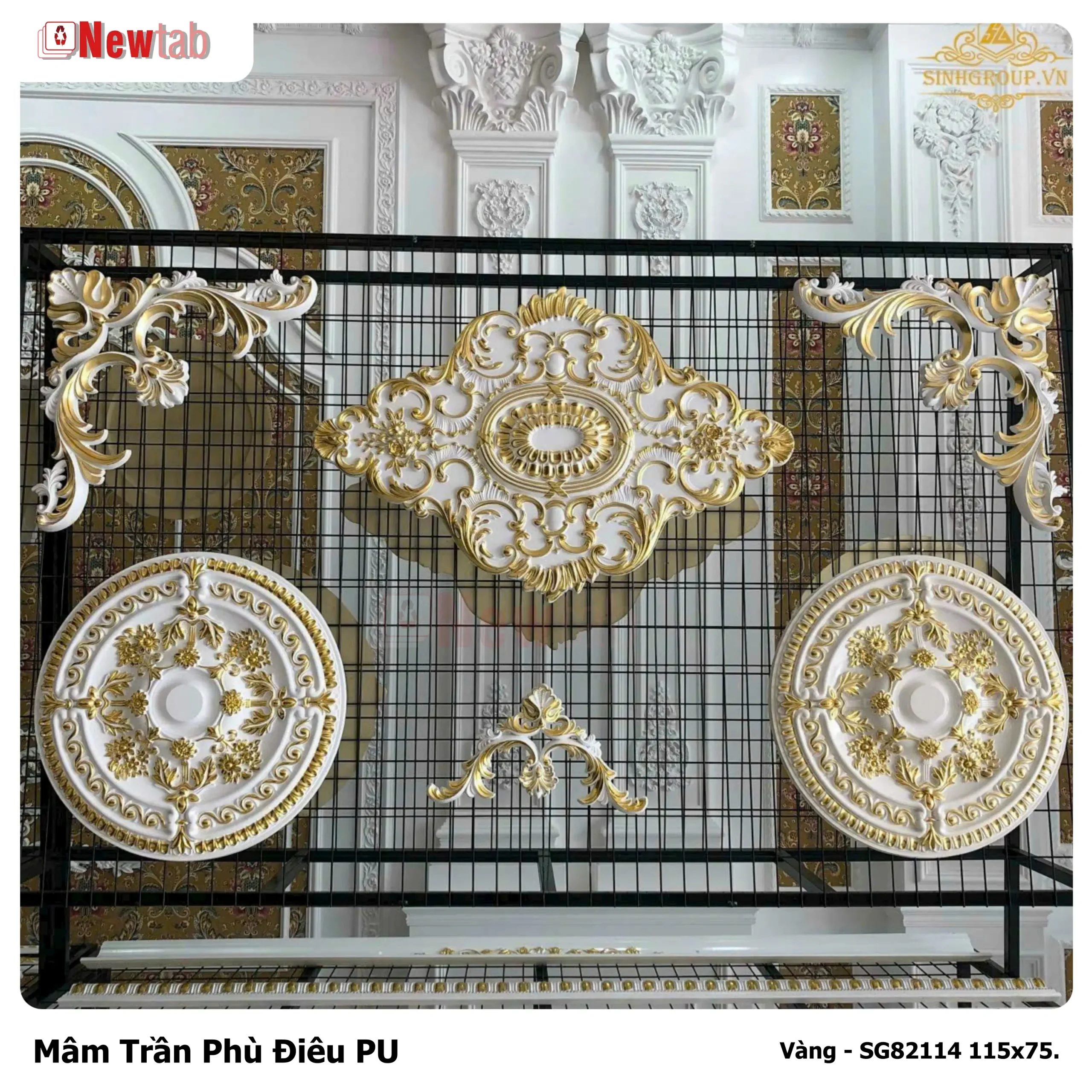 Mâm trần hoa văn phù điêu nhựa PU là sản phẩm trang trí trần nhà cao cấp, nổi bật với thiết kế hoa văn chạm nổi sắc sảo, mang phong cách cổ điển hoặc tân cổ điển. Đây là lựa chọn lý tưởng để tạo điểm nhấn trung tâm trần nhà, thường kết hợp với đèn chùm, quạt trần hoặc làm mâm trần độc lập, giúp không gian thêm phần sang trọng, đẳng cấp.